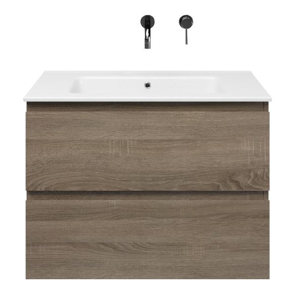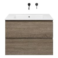| | Bellanti Elena/Etna badmeubel 80x46 2 softclose laden eiken donker greeploos keramische wastafel wit zonder kraangaten |