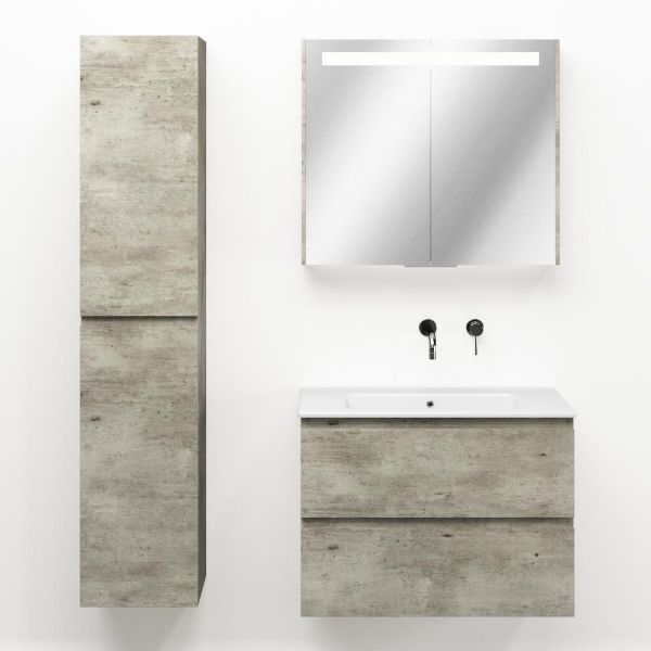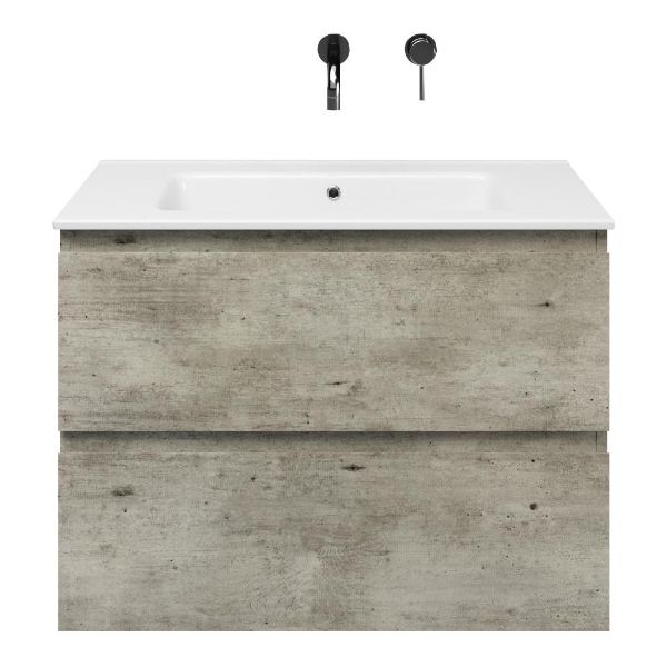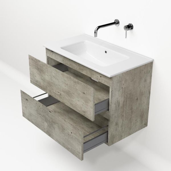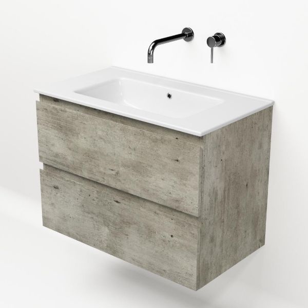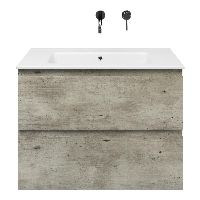 | | Bellanti Elena/Etna badmeubel 80x46 2 softclose laden steigerhout licht grijs greeploos keramische wastafel wit zonder kraangaten |