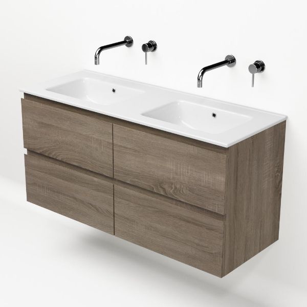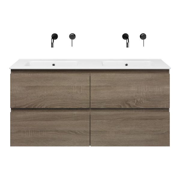 | Bellanti Elena/Etna badmeubel 120x46 4 softclose laden eiken donker greeploos keramische wastafel dubbel wit zonder kraangaten |