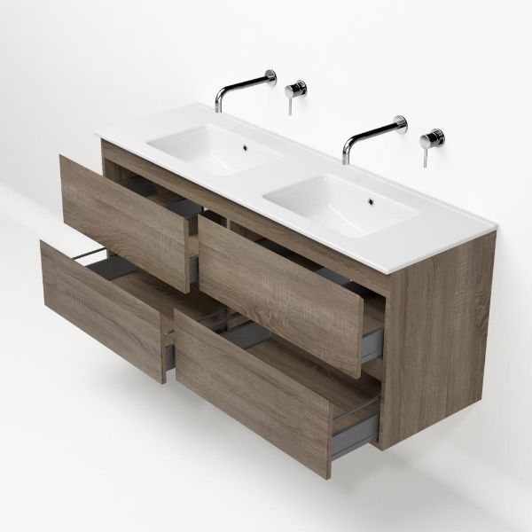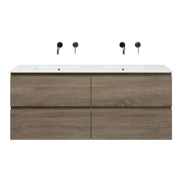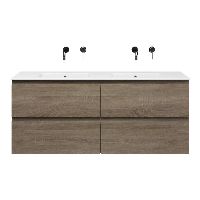 | | Bellanti Elena/Etna badmeubel 140x46 4 softclose laden eiken donker greeploos keramische wastafel dubbel wit zonder kraangat |