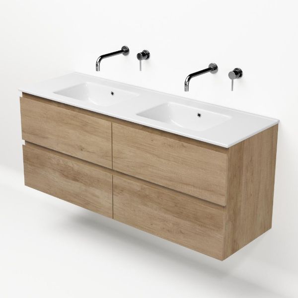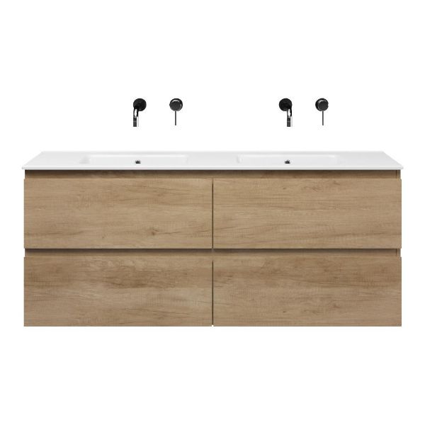 | | Bellanti Elena/Etna badmeubel 140x46 4 softclose laden olm greeploos keramische wastafel dubbel wit zonder kraangat |