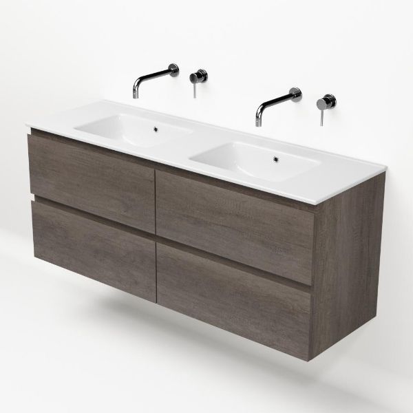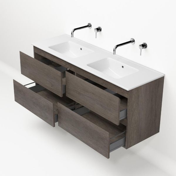 | Bellanti Elena/Etna badmeubel 140x46 4 softclose laden olm donker grijs greeploos keramische wastafel dubbel wit zonder kraangat |