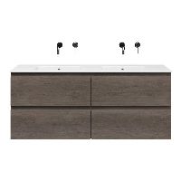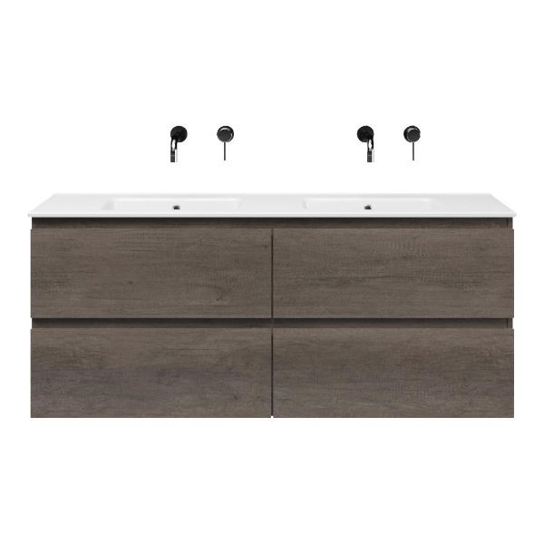 | | Bellanti Elena/Etna badmeubel 140x46 4 softclose laden olm donker grijs greeploos keramische wastafel dubbel wit zonder kraangat |