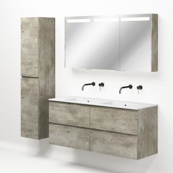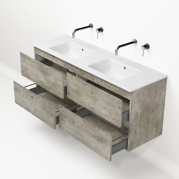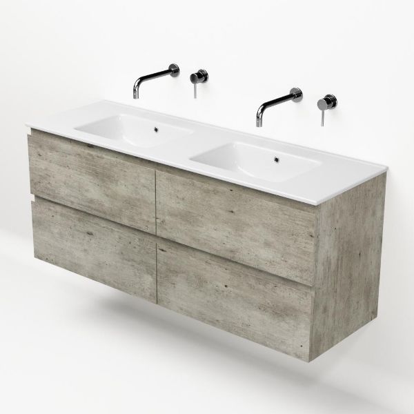 | Bellanti Elena/Etna badmeubel 140x46 4 softclose laden steigerhout licht grijs greeploos keramische wastafel dubbel wit zonder kraangat |