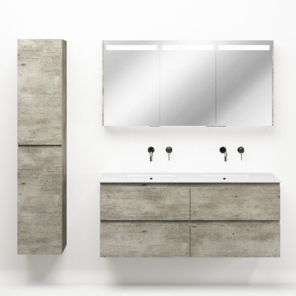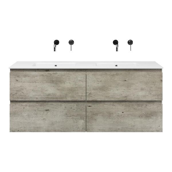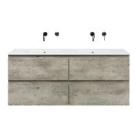| | Bellanti Elena/Etna badmeubel 140x46 4 softclose laden steigerhout licht grijs greeploos keramische wastafel dubbel wit zonder kraangat |