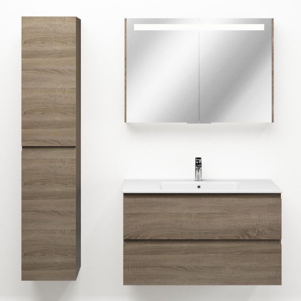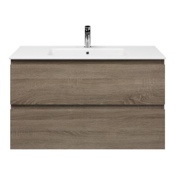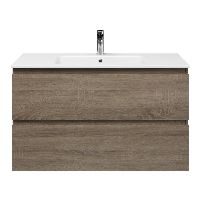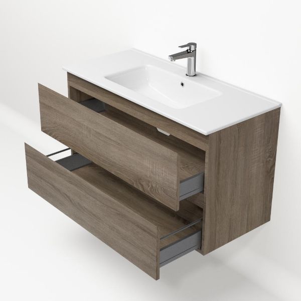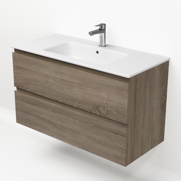 | Bellanti Elena/Etna badmeubel 100x46 2 softclose laden eiken donker greeploos keramische wastafel wit met 1 kraangat |
