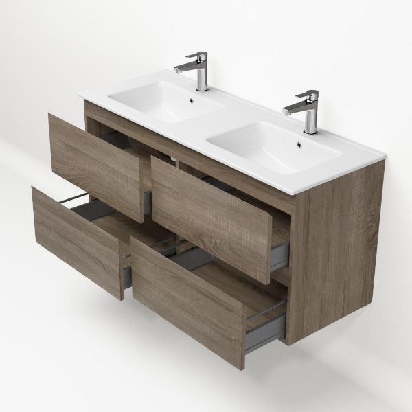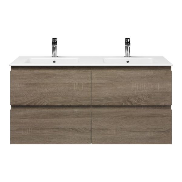 | Bellanti Elena/Etna badmeubel 120x46 4 softclose laden eiken donker greeploos keramische wastafel dubbel wit met 2 kraangaten |