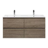| | Bellanti Elena/Etna badmeubel 120x46 4 softclose laden eiken donker greeploos keramische wastafel dubbel wit met 2 kraangaten |