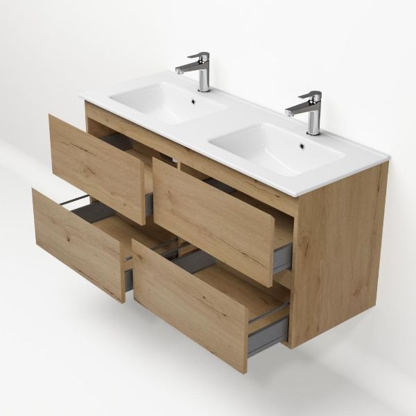 | Bellanti Elena/Etna badmeubel 120x46 4 softclose laden eiken natuur greeploos keramische wastafel dubbel wit met 2 kraangaten |