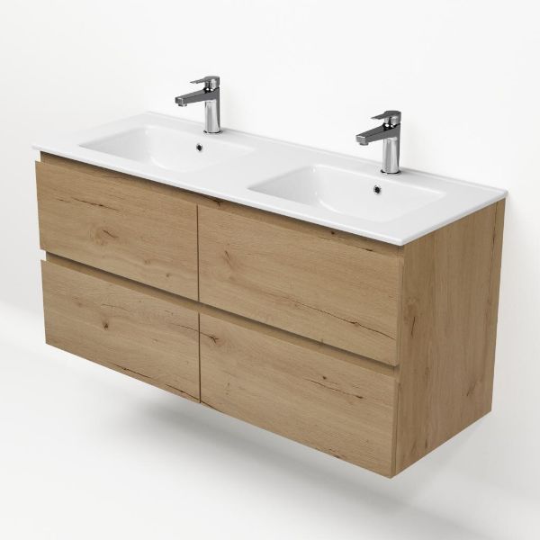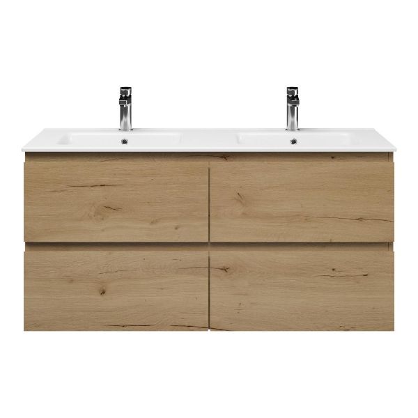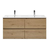 | | Bellanti Elena/Etna badmeubel 120x46 4 softclose laden eiken natuur greeploos keramische wastafel dubbel wit met 2 kraangaten |