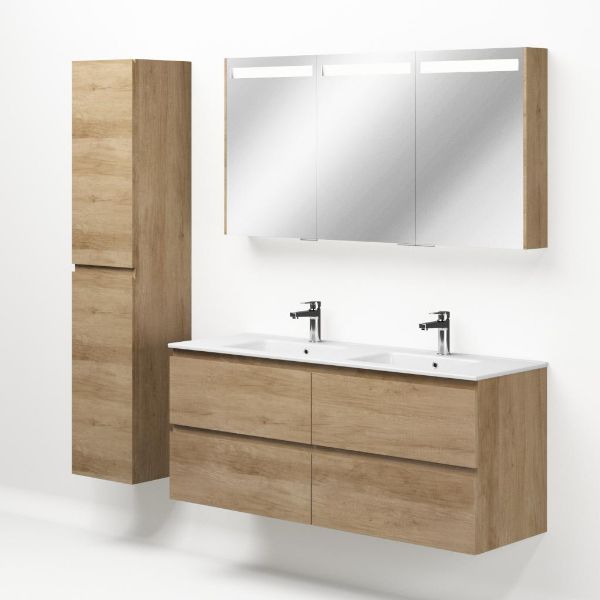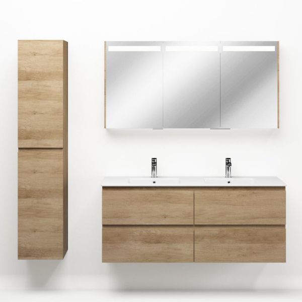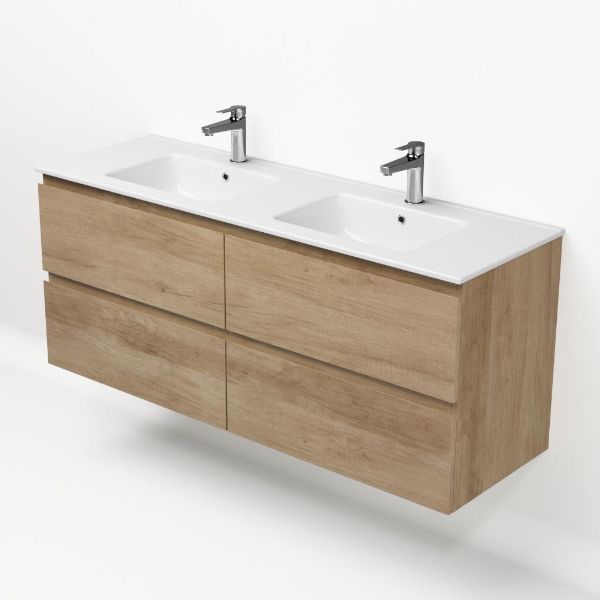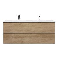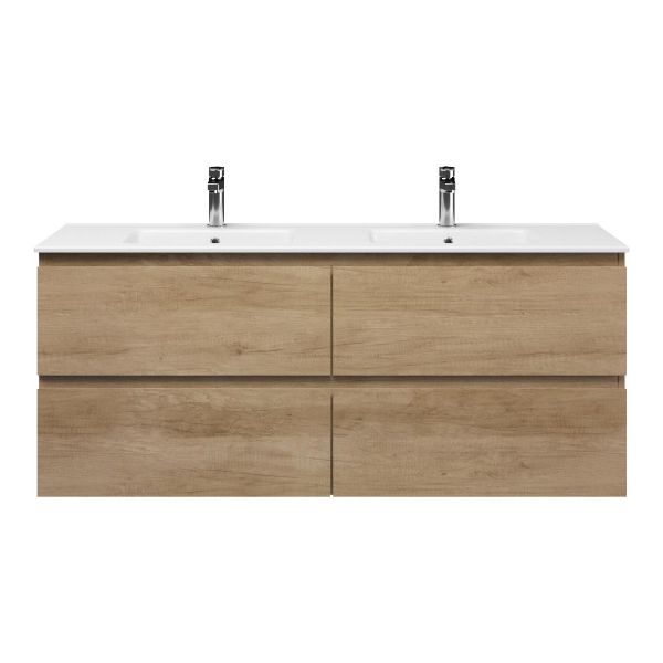 | | Bellanti Elena/Etna badmeubel 140x46 4 softclose laden olm greeploos keramische wastafel dubbel wit met 2 kraangaten |