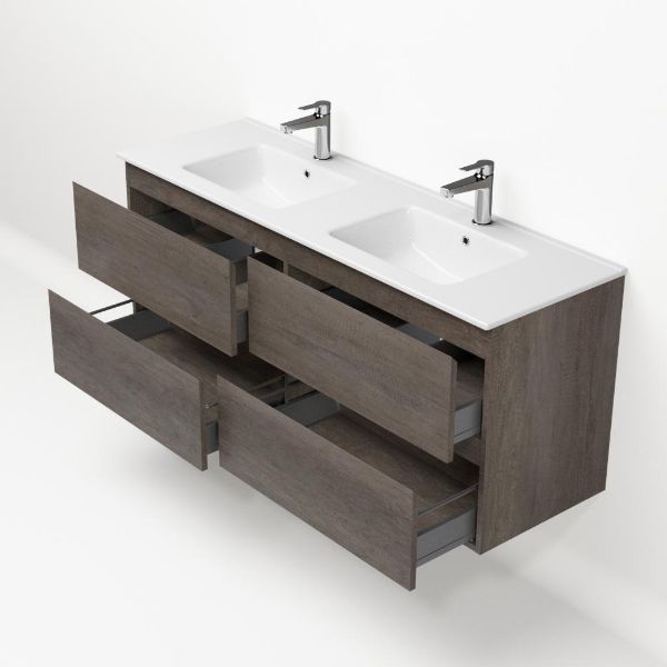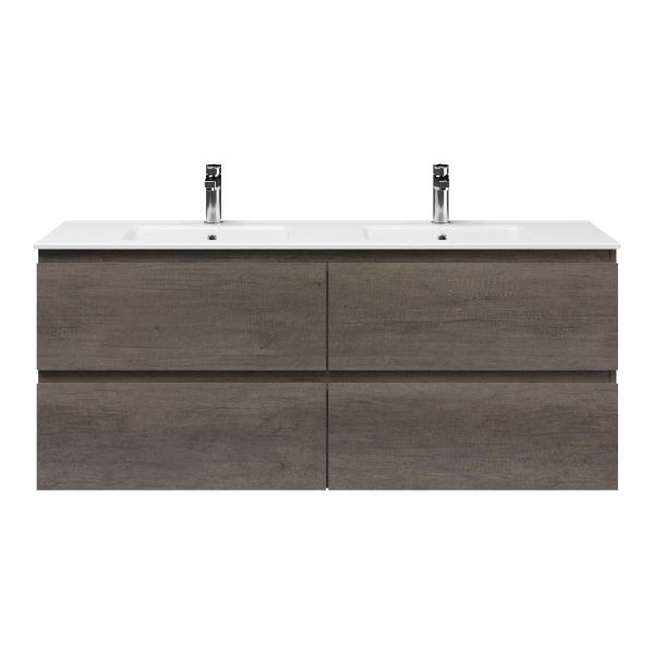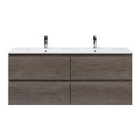 | | Bellanti Elena/Etna badmeubel 140x46 4 softclose laden olm donker grijs greeploos keramische wastafel dubbel wit met 2 kraangaten |