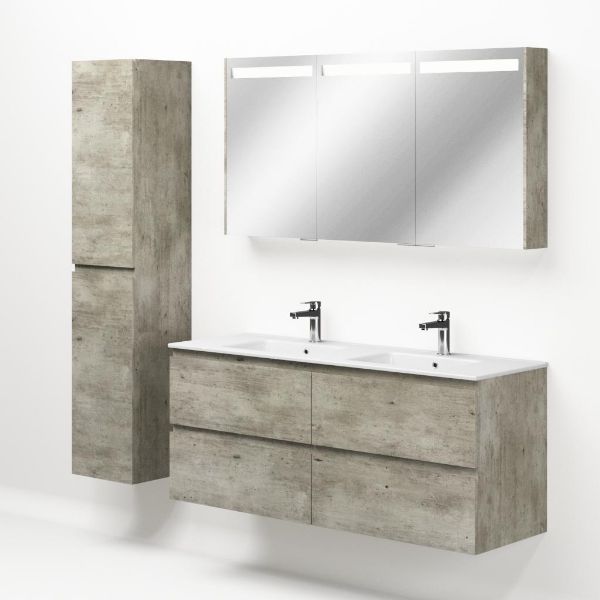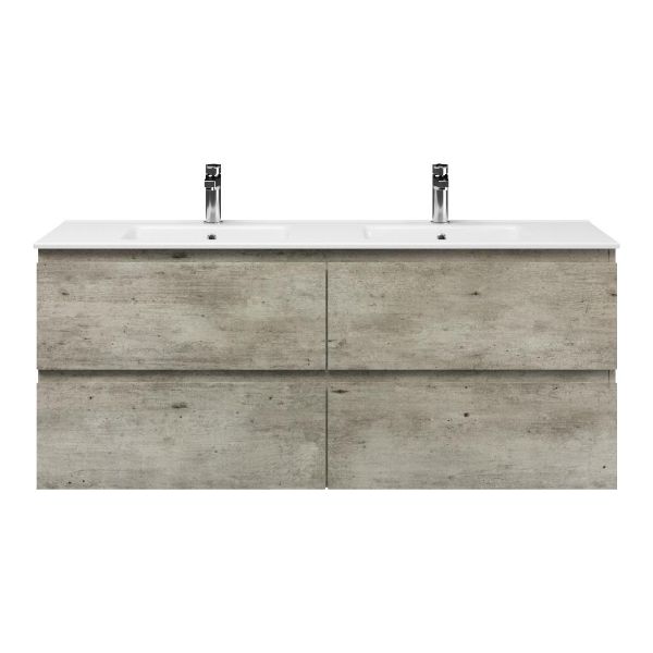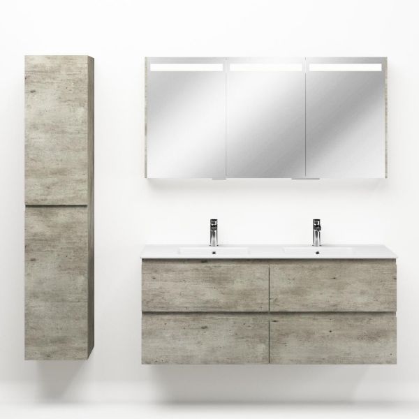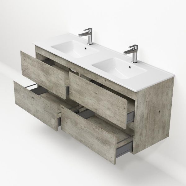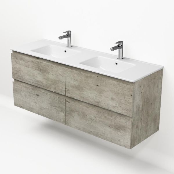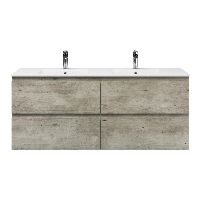 | Bellanti Elena/Etna badmeubel 140x46 4 softclose laden steigerhout licht grijs greeploos keramische wastafel dubbel wit met 2 kraangaten |