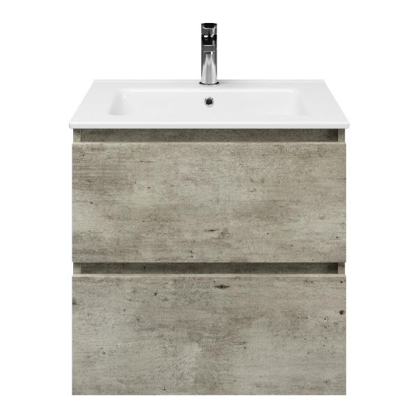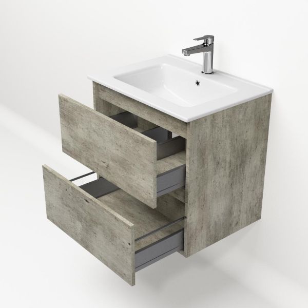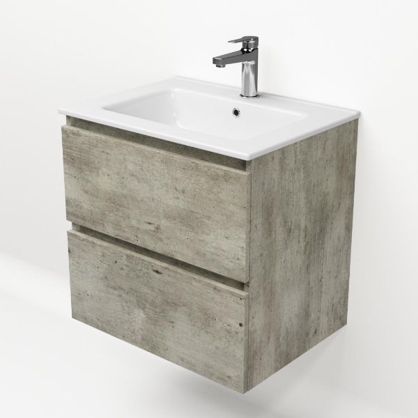 | Bellanti Elena/Etna badmeubel 60x46 2 softclose laden steigerhout licht grijs greeploos keramische wastafel wit met 1 kraangat |