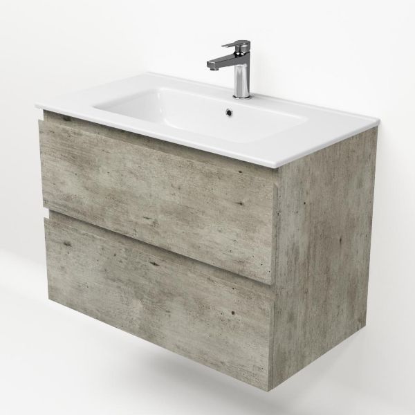 | Bellanti Elena/Etna badmeubel 80x46 2 softclose laden steigerhout licht grijs greeploos keramische wastafel wit met 1 kraangat |