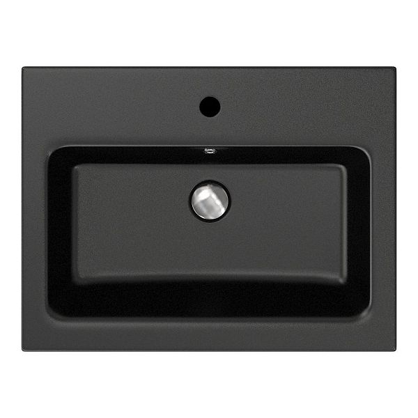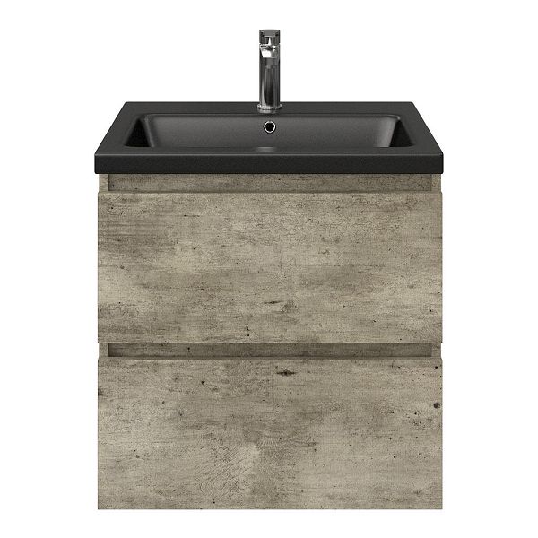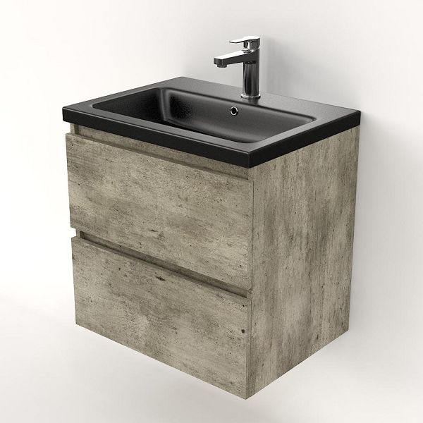 | Bellanti Elena/Amelia badmeubel 60x46 2 softclose laden steigerhout licht grijs greeploos keramische wastafel zwart mat met 1 kraangat |