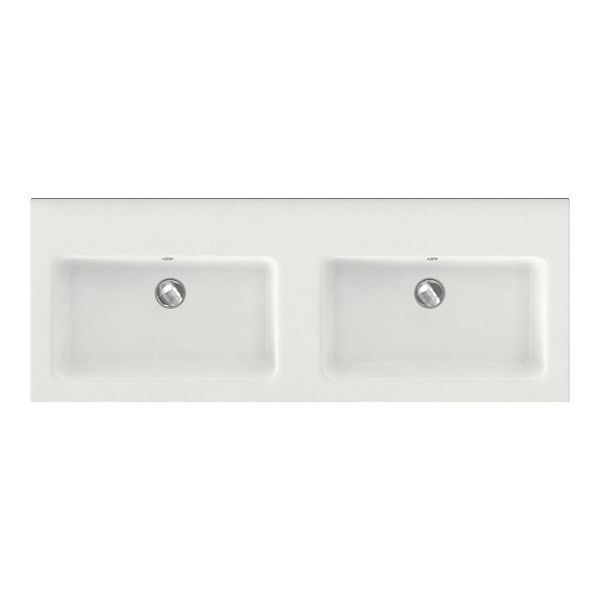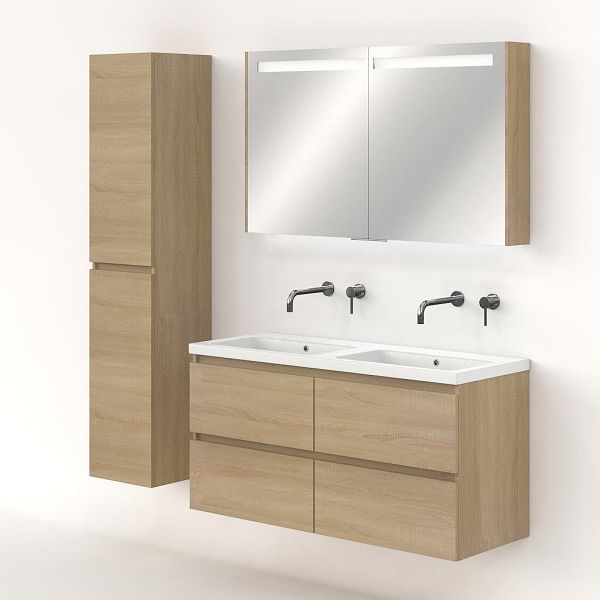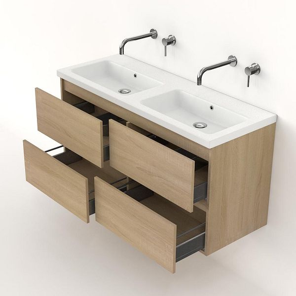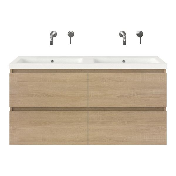 | | Bellanti Elena/Amelia badmeubel 120x46 4 softclose laden eiken licht greeploos keramische wastafel dubbel wit mat zonder kraangaten |