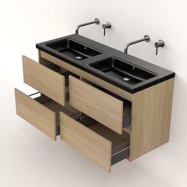 | | Bellanti Elena/Amelia badmeubel 120x46 4 softclose laden eiken licht greeploos keramische wastafel dubbel zwart mat zonder kraangaten |