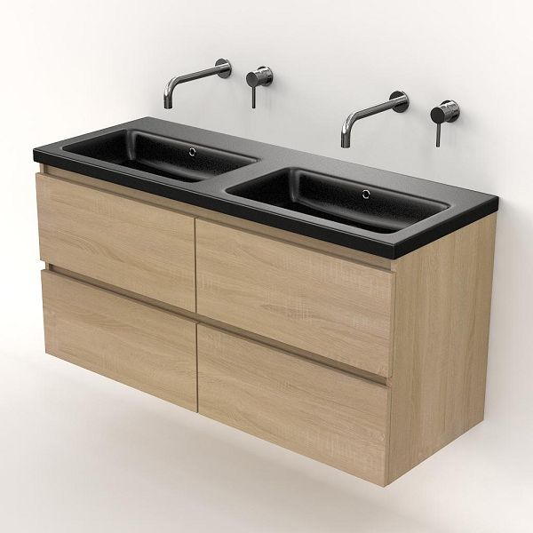| Bellanti Elena/Amelia badmeubel 120x46 4 softclose laden eiken licht greeploos keramische wastafel dubbel zwart mat zonder kraangaten |