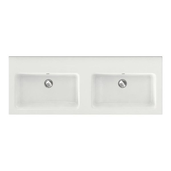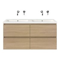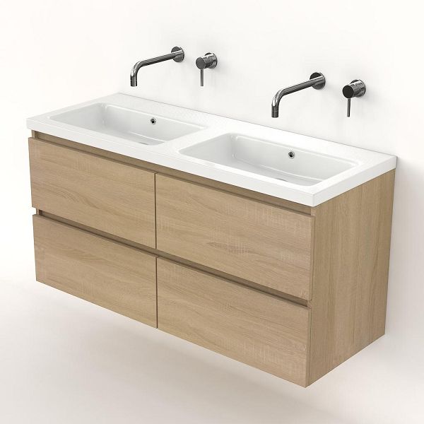 | | Bellanti Elena/Amelia badmeubel 120x46 4 softclose laden eiken licht greeploos keramische wastafel dubbel wit glans zonder kraangaten |