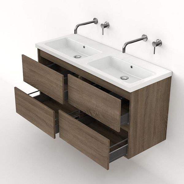 | Bellanti Elena/Amelia badmeubel 120x46 4 softclose laden eiken donker greeploos keramische wastafel dubbel wit glans zonder kraangaten |