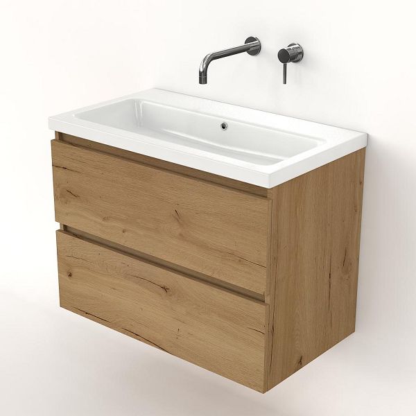 | | Bellanti Elena/Amelia badmeubel 80x46 2 softclose laden eiken natuur greeploos keramische wastafel wit glans zonder kraangaten |
