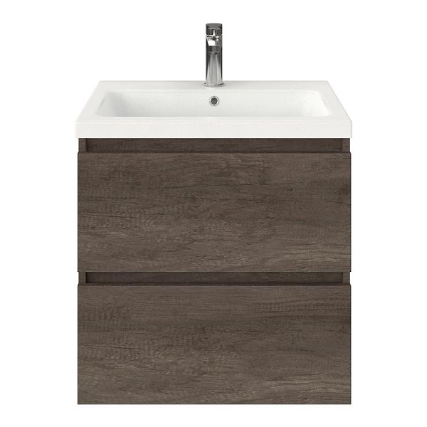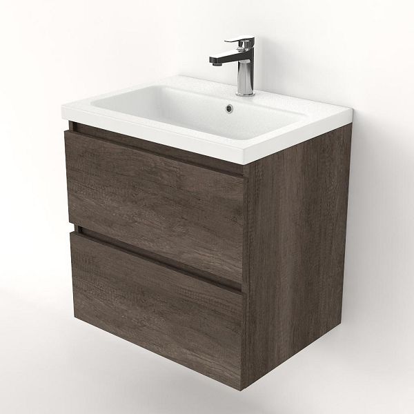 | Bellanti Elena/Amelia badmeubel 60x46 2 softclose laden olm donker grijs greeploos keramische wastafel wit mat met 1 kraangat |