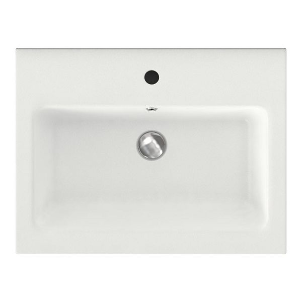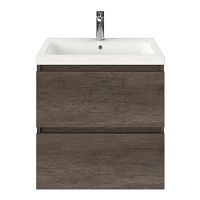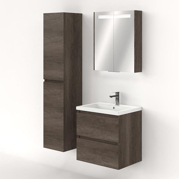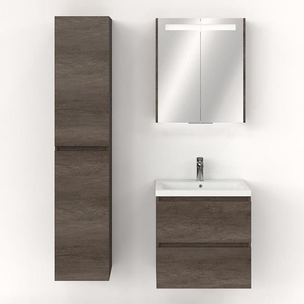 Greeploos badkamermeubel in de kleur olm donker grijs is 60 cm breed. De wastafel is vervaardig in keramiek en heeft de kleur wit mat keramiek. Dit badkamermeubel met deze wastafel is leverbaar tussen de 60 cm t/m 120 cm