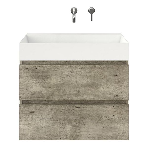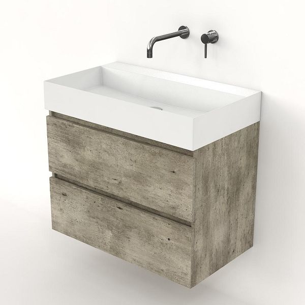 | | Bellanti Elena/Azzurra badmeubel 80x46 2 softclose laden steigerhout licht grijs greeploos keramische wastafel wit glans zonder kraangaten |