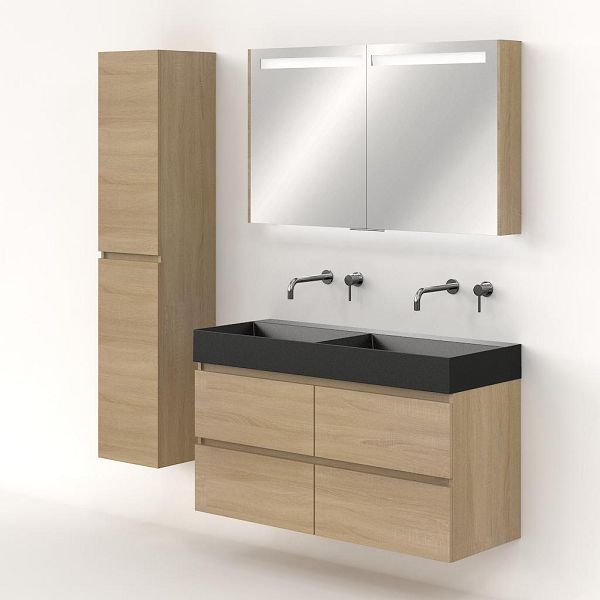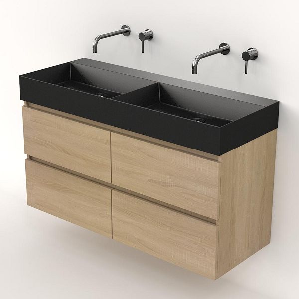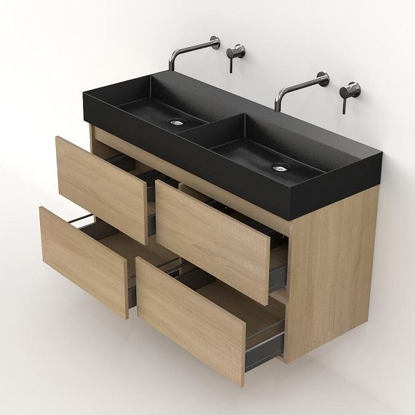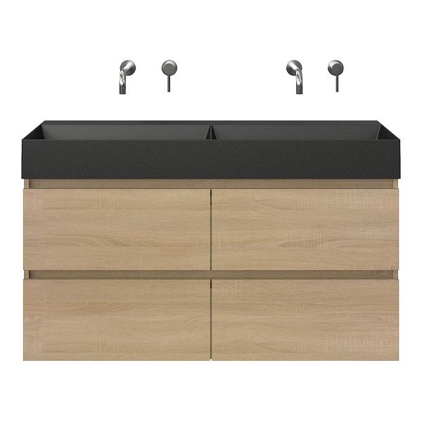 | Bellanti Elena/Azzurra badmeubel 120x46 4 softclose laden eiken licht greeploos keramische wastafel dubbel antraciet mat zonder kraangaten |