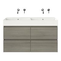 | | Bellanti Elena/Azzurra badmeubel 120x46 4 softclose laden eiken licht grijs greeploos keramische wastafel dubbel wit glans zonder kraangaten |