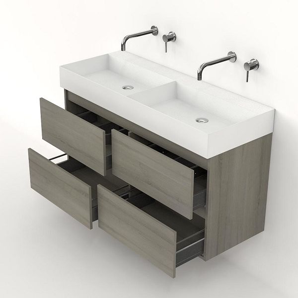 | Bellanti Elena/Azzurra badmeubel 120x46 4 softclose laden eiken licht grijs greeploos keramische wastafel dubbel wit mat zonder kraangaten |