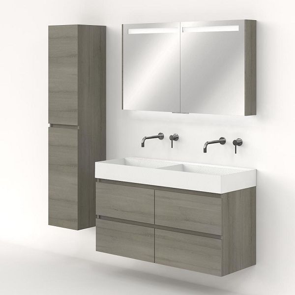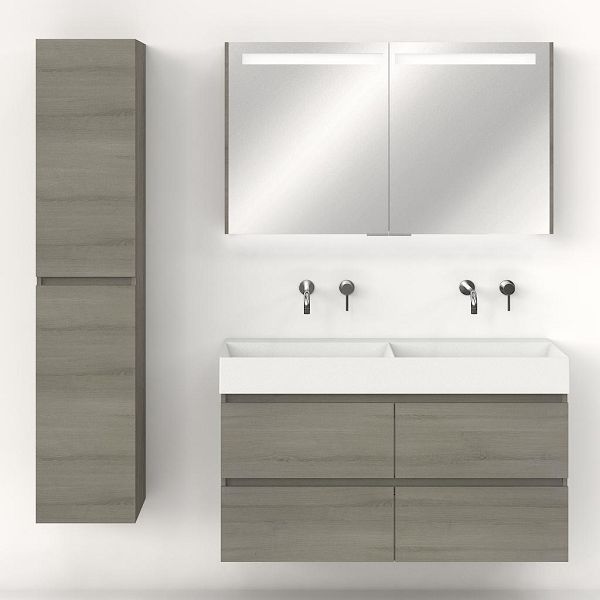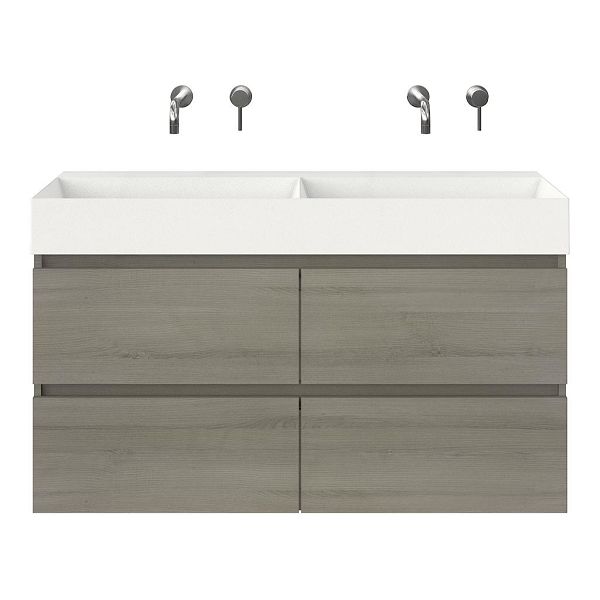 | | Bellanti Elena/Azzurra badmeubel 120x46 4 softclose laden eiken licht grijs greeploos keramische wastafel dubbel wit mat zonder kraangaten |