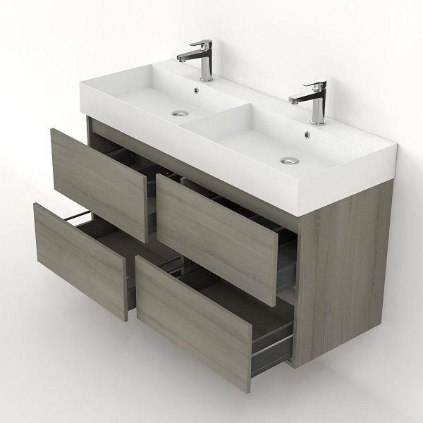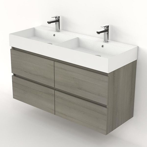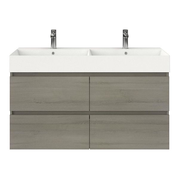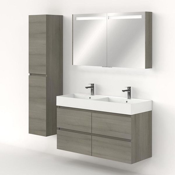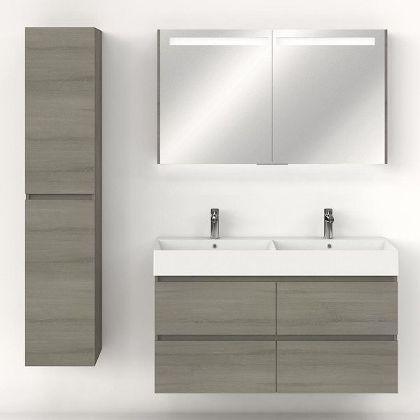 | Bellanti Elena/Azzurra badmeubel 120x46 4 softclose laden eiken licht grijs greeploos keramische wastafel dubbel wit mat met 2 kraangaten |