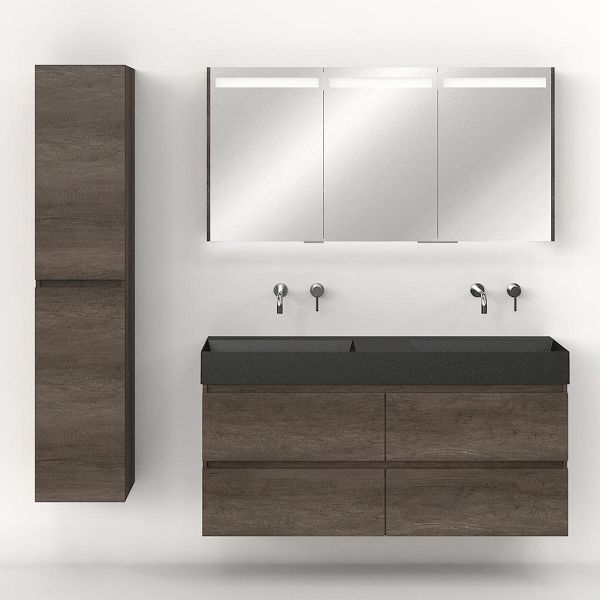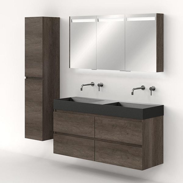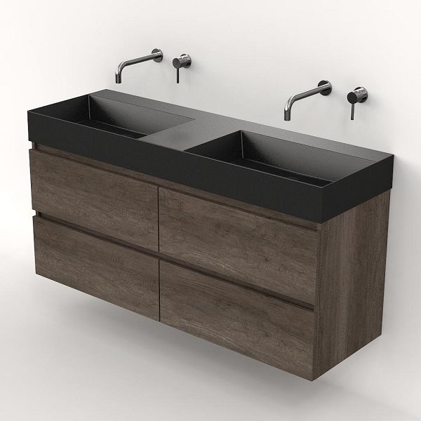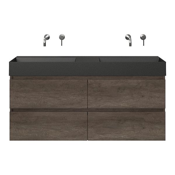 | Bellanti Elena/Azzurra badmeubel 140x46 4 softclose laden olm donker grijs greeploos keramische wastafel dubbel antraciet mat zonder kraangaten |