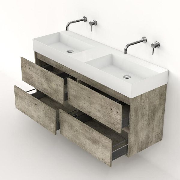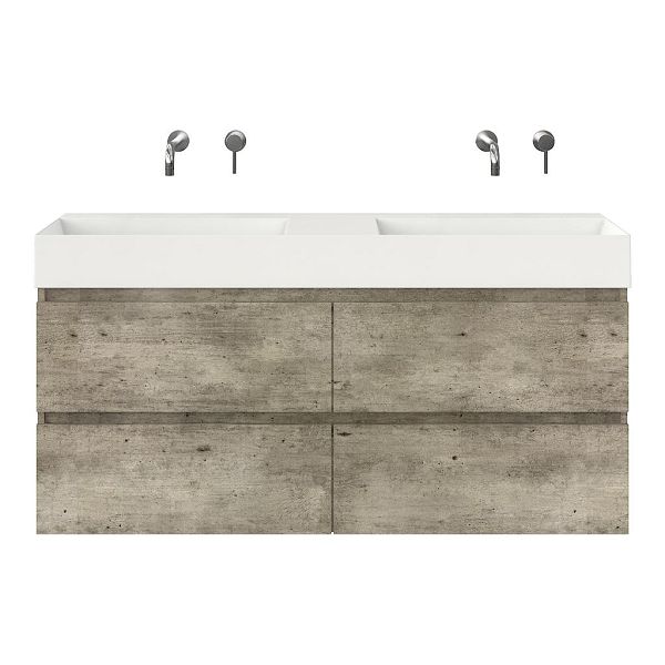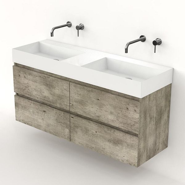 | | Bellanti Elena/Azzurra badmeubel 140x46 4 softclose laden steigerhout licht grijs greeploos keramische wastafel dubbel wit glans zonder kraangaten |