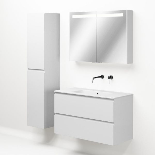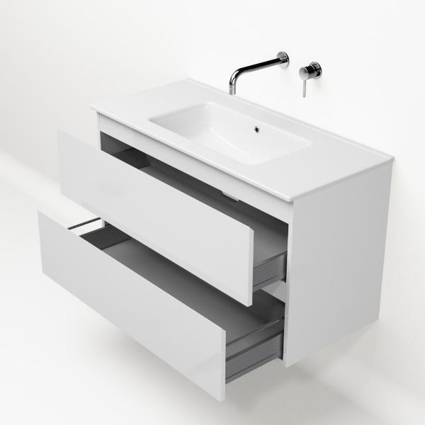 | | Bellanti Gisella/Etna badmeubel 100x46 2 softclose laden wit hoogglans greeploos keramische wastafel wit zonder kraangaten |