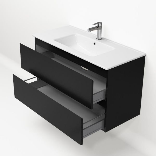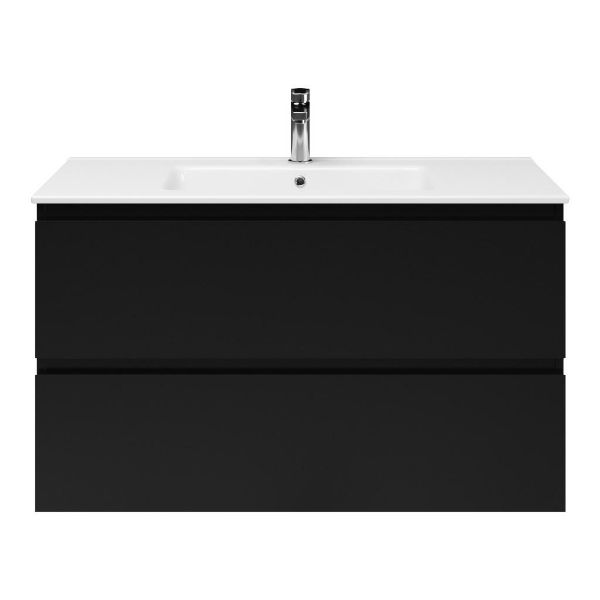 | | Bellanti Gisella/Etna badmeubel 100x46 2 softclose laden zwart mat greeploos keramische wastafel wit met 1 kraangat |