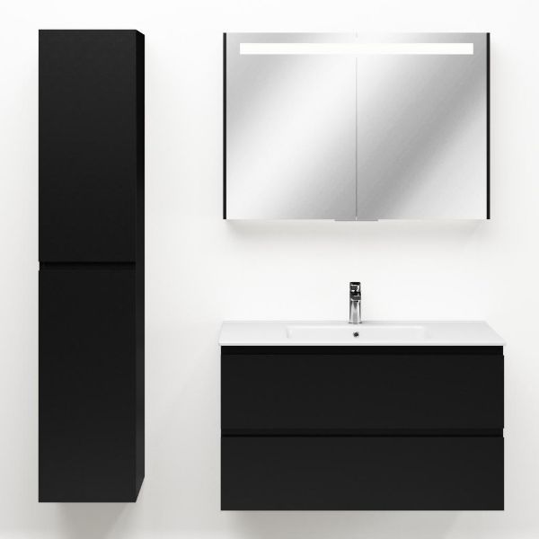 | Bellanti Gisella/Etna badmeubel 100x46 2 softclose laden zwart mat greeploos keramische wastafel wit met 1 kraangat |
