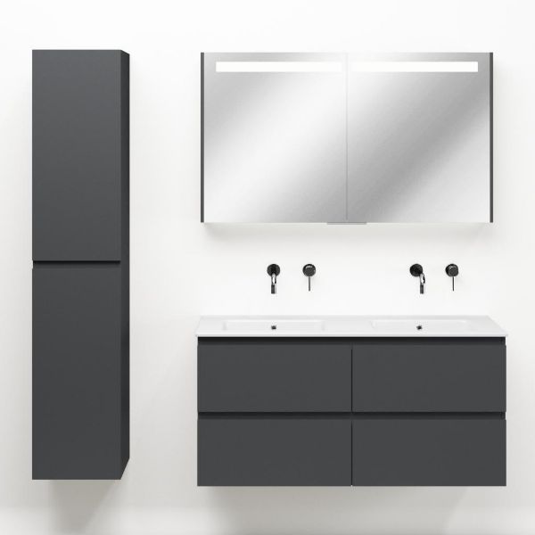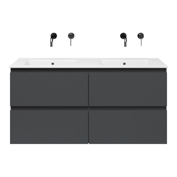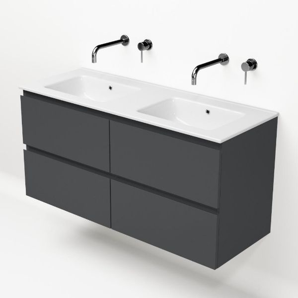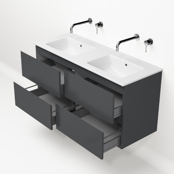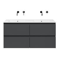 | | Bellanti Gisella/Etna badmeubel 120x46 4 softclose laden antraciet mat greeploos keramische wastafel dubbel wit zonder kraangat |