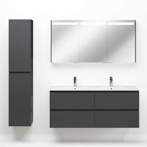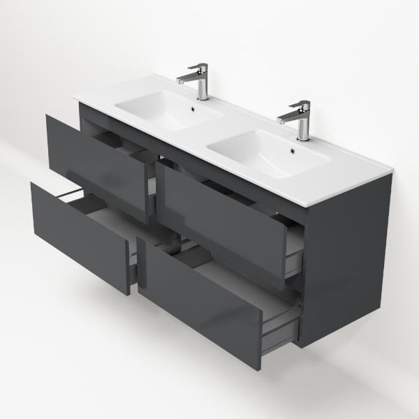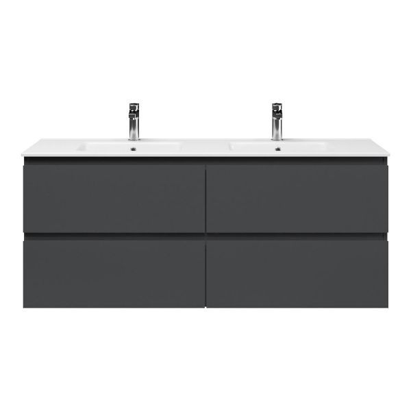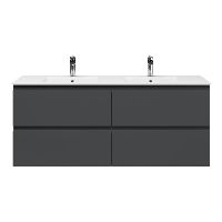 | Bellanti Gisella/Etna badmeubel 140x46 4 softclose laden antraciet hoogglans greeploos keramische wastafel dubbel wit met 2 kraangaten |