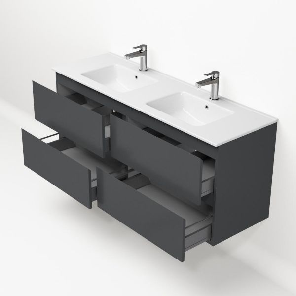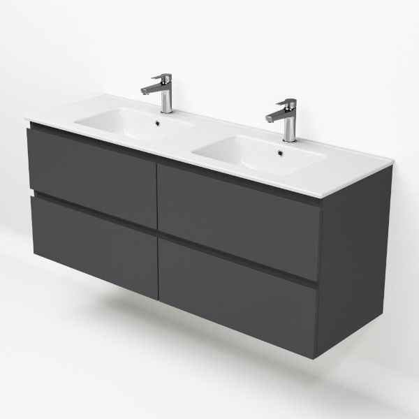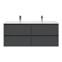 | Bellanti Gisella/Etna badmeubel 140x46 4 softclose laden antraciet mat greeploos keramische wastafel dubbel wit met 2 kraangaten |