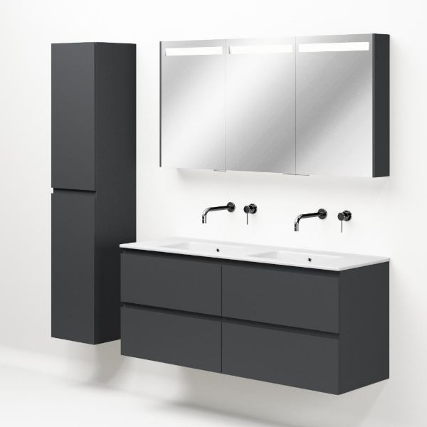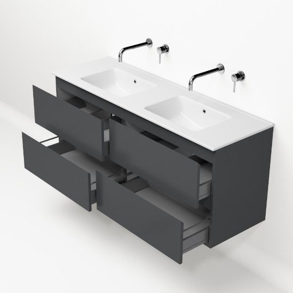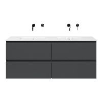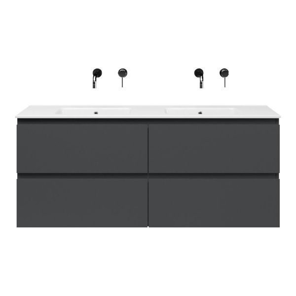 | | Bellanti Gisella/Etna badmeubel 140x46 4 softclose laden antraciet mat greeploos keramische wastafel dubbel wit zonder kraangat |