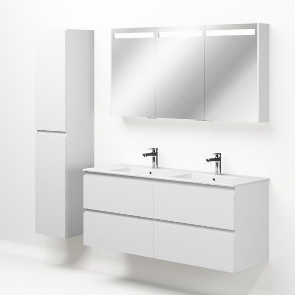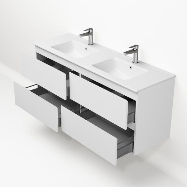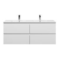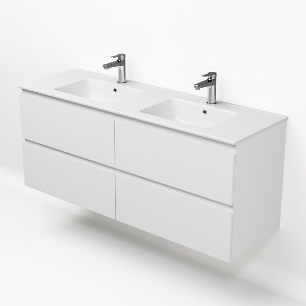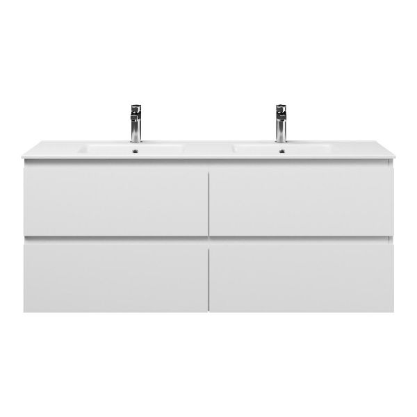 | | Bellanti Gisella/Etna badmeubel 140x46 4 softclose laden wit mat greeploos keramische wastafel dubbel wit met 2 kraangaten |
