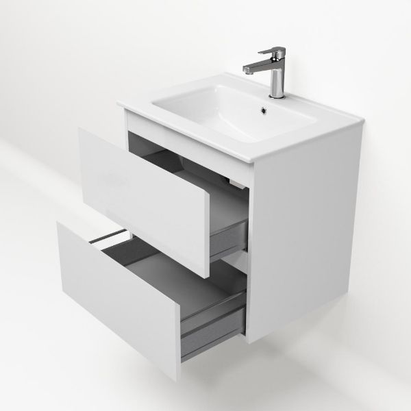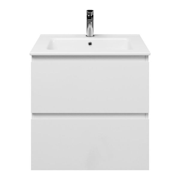 | Bellanti Gisella/Etna badmeubel 60x46 2 softclose laden wit hoogglans greeploos keramische wastafel wit met 1 kraangat |