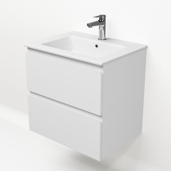 | Bellanti Gisella/Etna badmeubel 60x46 2 softclose laden wit mat greeploos keramische wastafel wit met 1 kraangat |