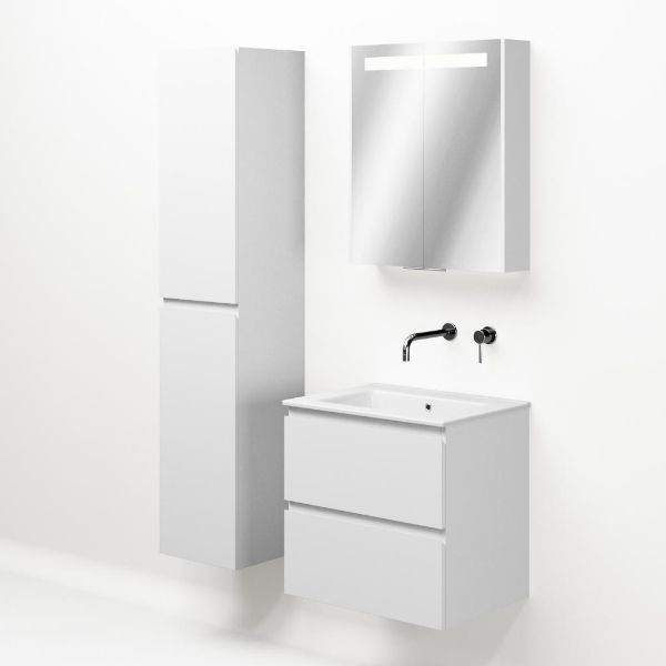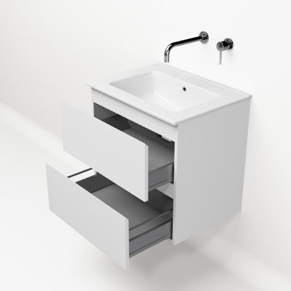 | Bellanti Gisella/Etna badmeubel 60x46 2 softclose laden wit mat greeploos keramische wastafel wit zonder kraangaten |