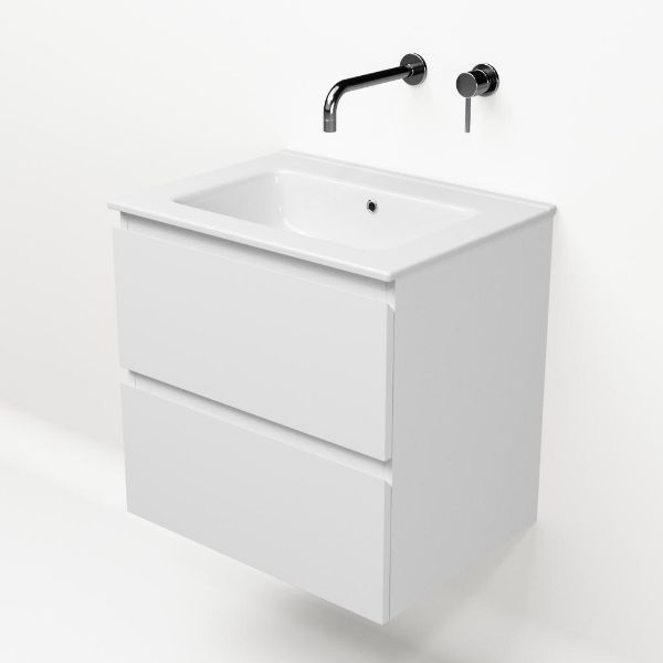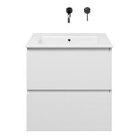 | | Bellanti Gisella/Etna badmeubel 60x46 2 softclose laden wit mat greeploos keramische wastafel wit zonder kraangaten |