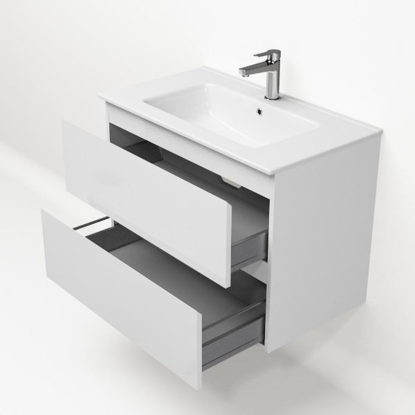 | | Bellanti Gisella/Etna badmeubel 80x46 2 softclose laden wit hoogglans greeploos keramische wastafel wit met 1 kraangat |