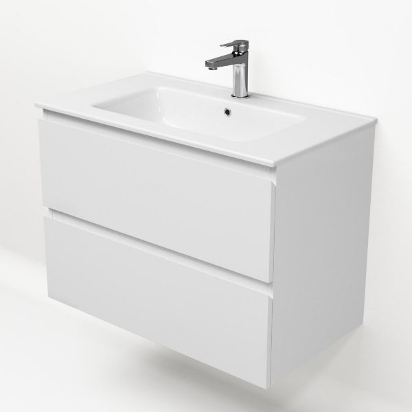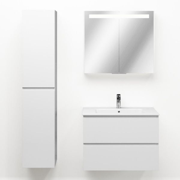 | Bellanti Gisella/Etna badmeubel 80x46 2 softclose laden wit hoogglans greeploos keramische wastafel wit met 1 kraangat |